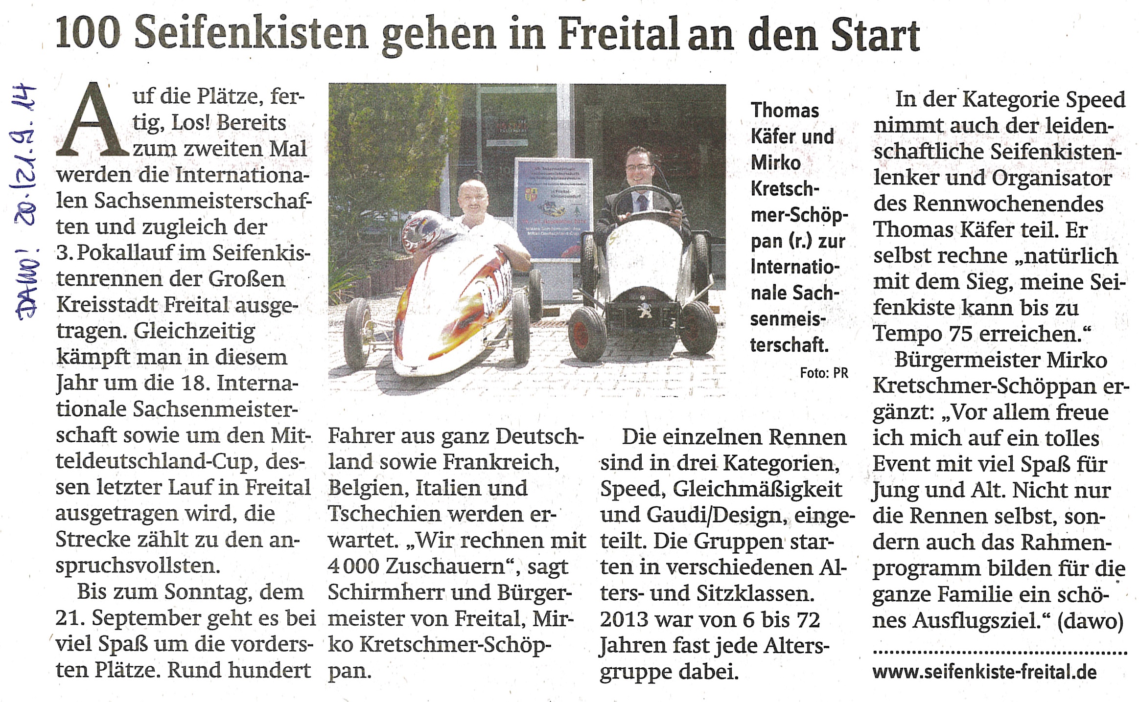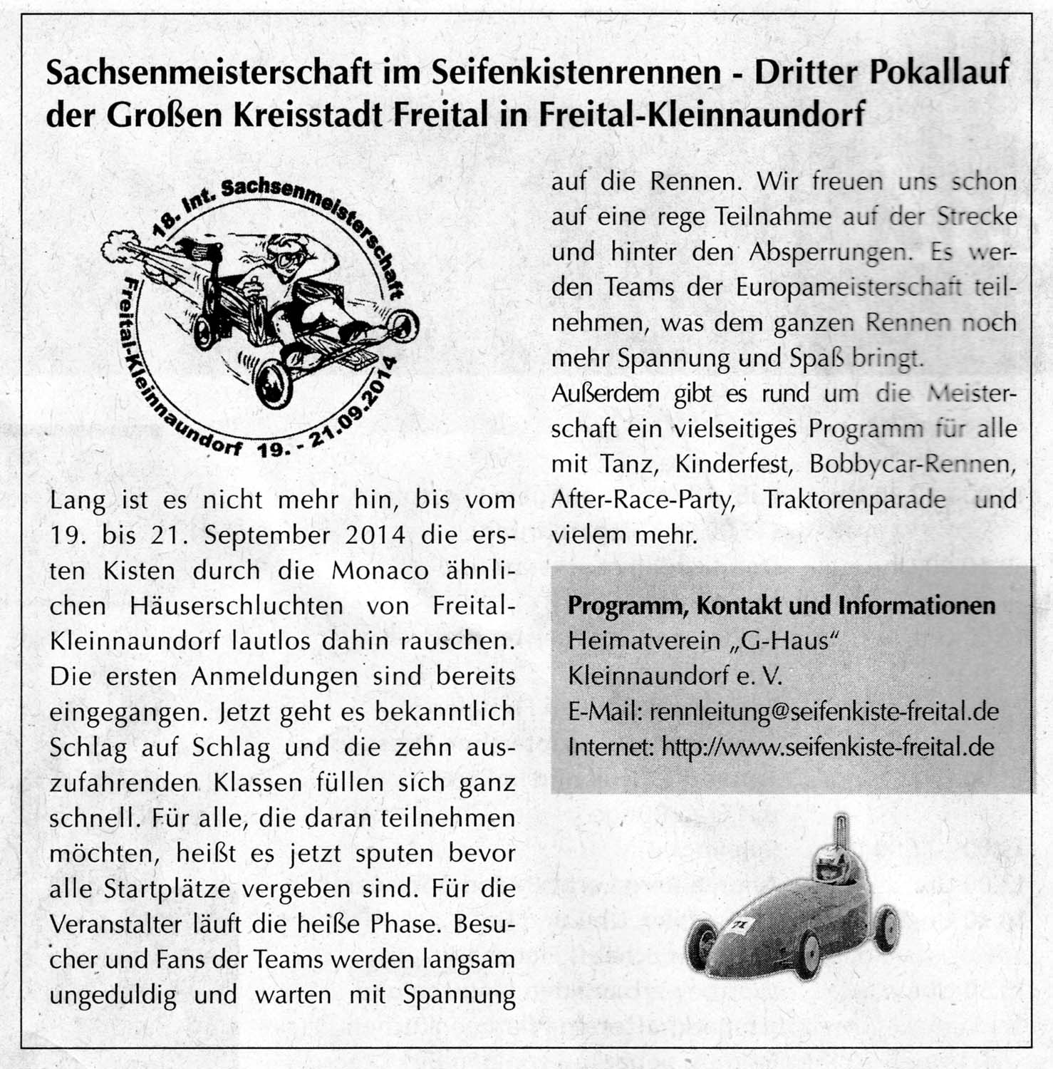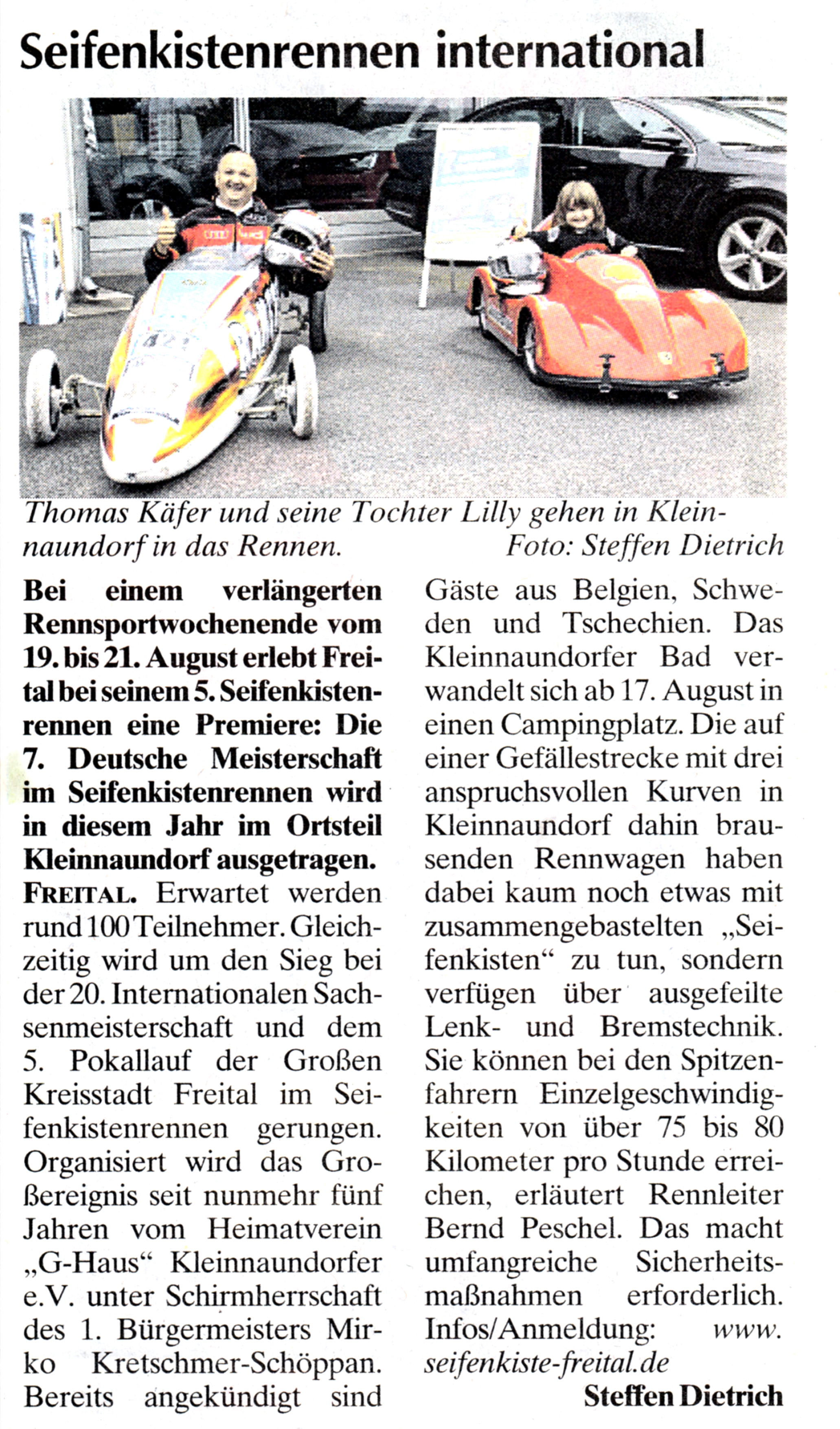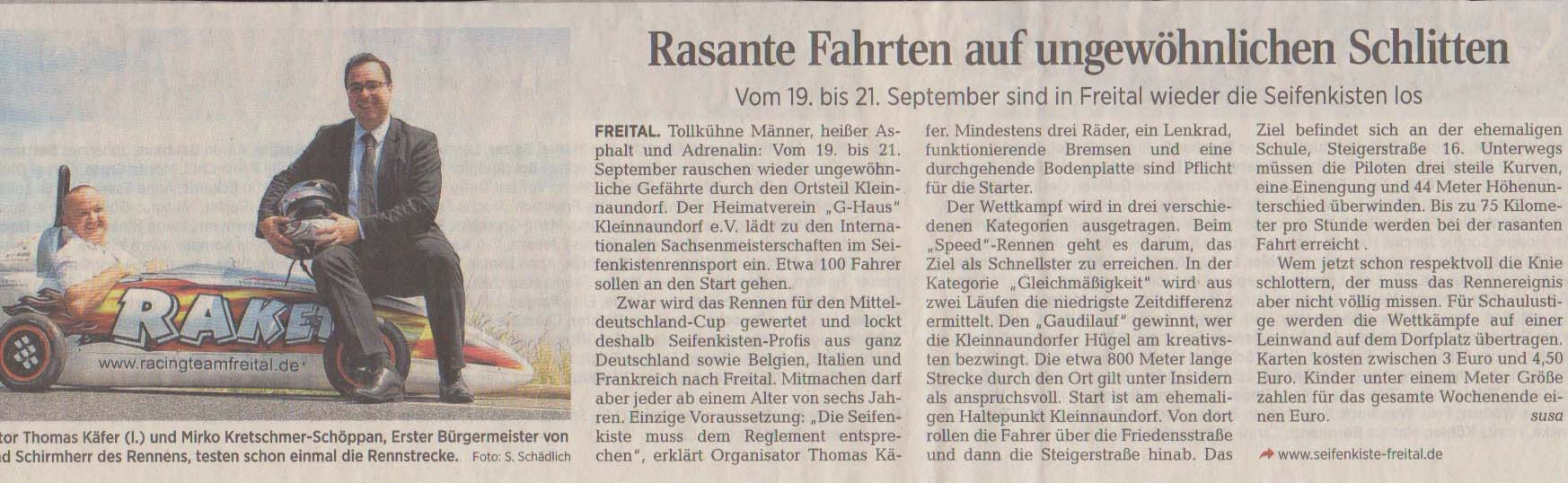 Presse 13. 05. 202213. 05. 2022 Seifenkiste-freital.de [Zeige eine Slideshow] ◄ 1 2 MDR1 Radio Sachsen Mittschnitt 2013 https://www.seifenkiste-freital.de/wp-content/uploads/2015/10/seifenkiste2013.mp3 HitRadio RTL Sachsen Mittschnitt 2015 https://www.seifenkiste-freital.de/wp-content/uploads/2015/10/2015-09-19-HITRADIO-RTL-Seifenkisten.mp3 MDR1 Radio Sachsen Mittschnitt 2017 https://www.seifenkiste-freital.de/wp-content/uploads/2017/08/2017-08-25-MDR-Sachsen-Seifenkistenrennen.mp3